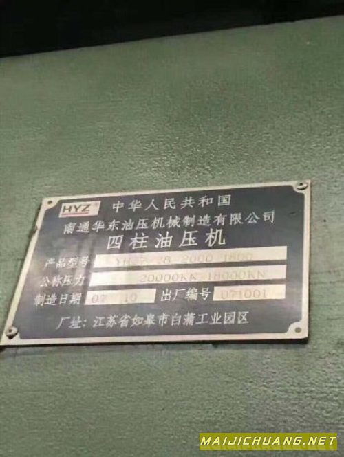 产品名称:出售南通2000吨/1800四柱油压机